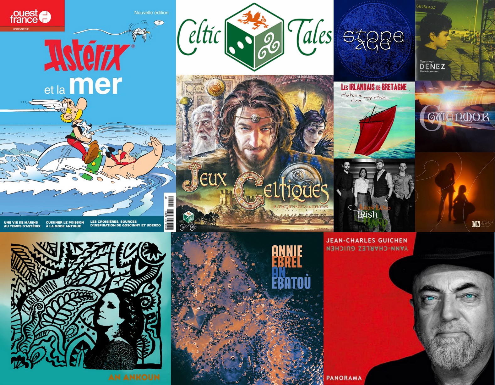 Actus, présentations : Hors Série Ouest-France “Astérix et la Mer” avec Céline Gourmelon, et jeux de société celtiques de Celtic Tales avec Alexandre Martin, avec aussi : Klara Ninn, Stone Age, Les Irlandais de Bretagne, Jean-Charles Guichen, Annie Ebrel, Denez, Julien Loko, Gwenmor, Emezi